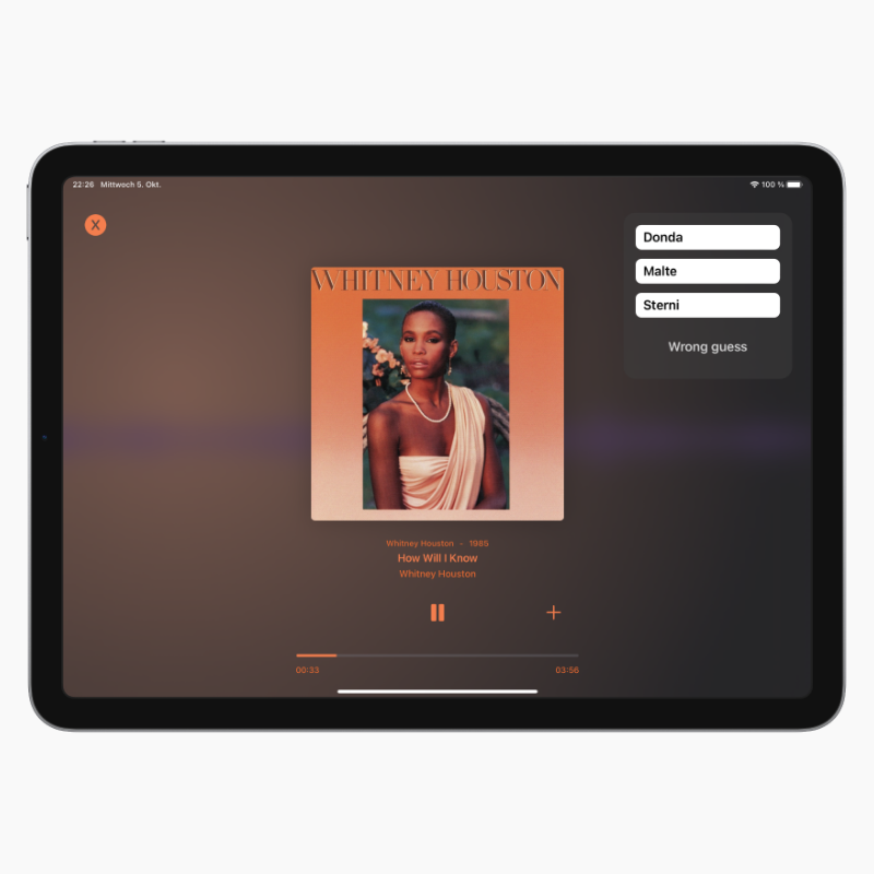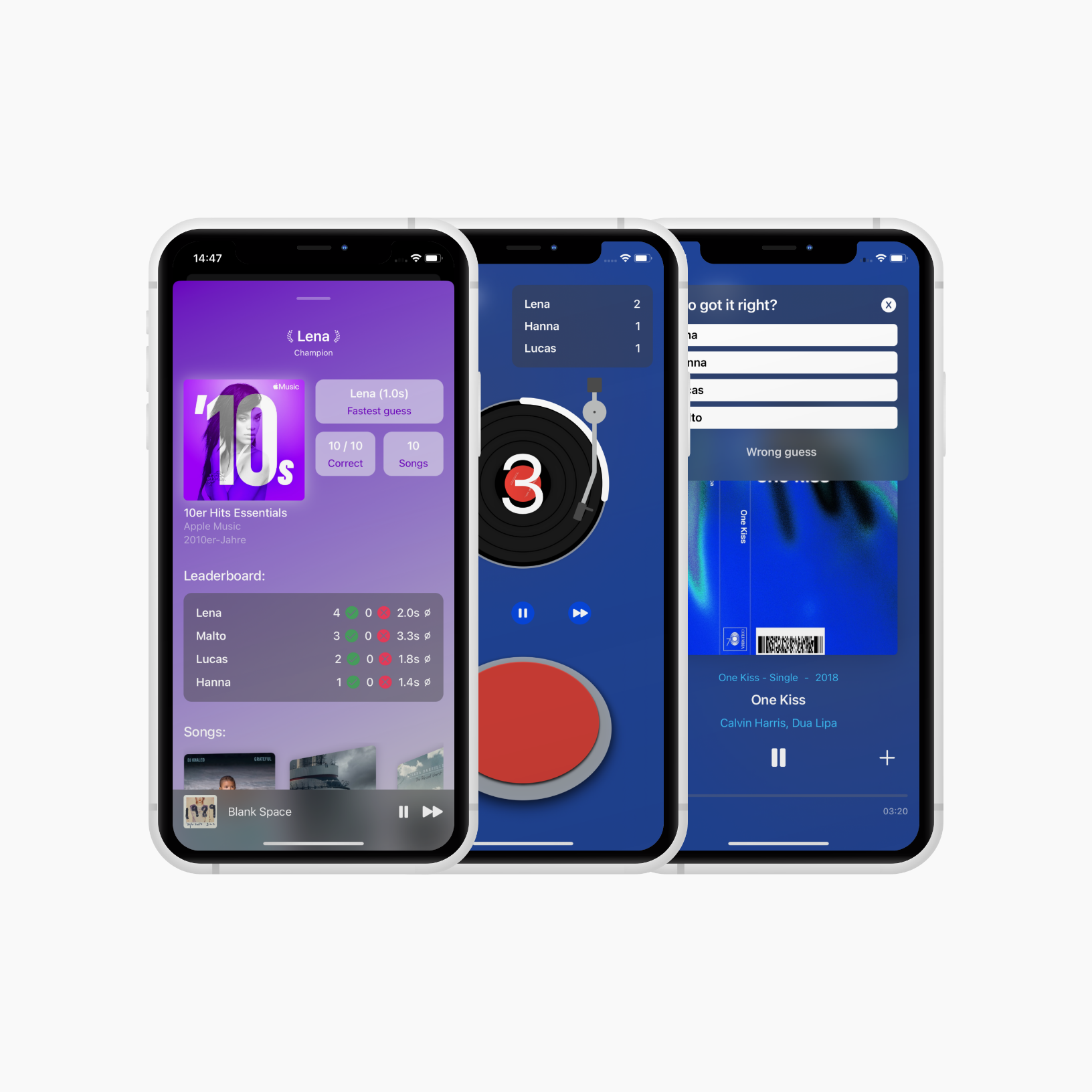 The user can pick a playlist, customize the rules, add teammates and start the game. A random song from the playlist is played and the players have to guess which one it is. If you think you know the song, you hit a buzzer and guess. Round after round the winner is chosen. A simple principle, but particularly fun for music lovers.